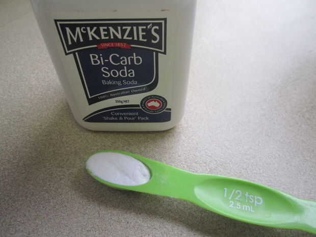 Ahora, agregue 1/2 cucharadita de bicarbonato de sodio al líquido mientras que todavía se está calentando.