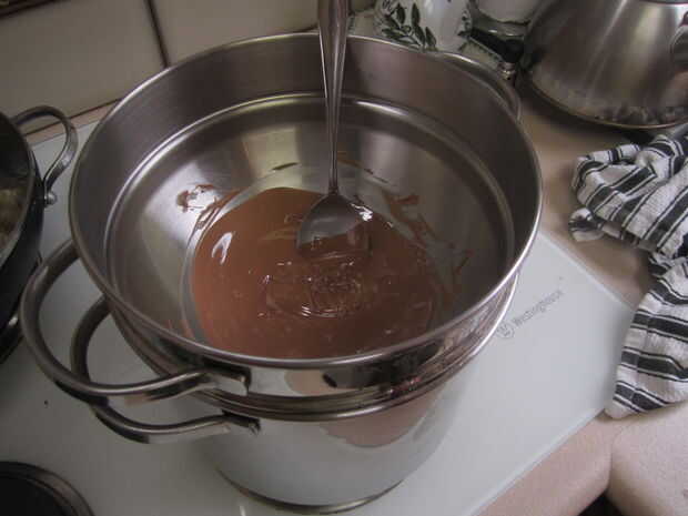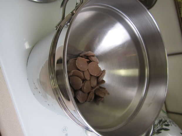 Lugar el chocolate se derrite en el tazón y revuelva hasta que se derritan.