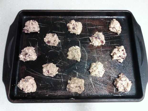 Pulverizar las galletas con spray antiadherente. Si coloca la masa para galletas en la bandeja para hornear galletas como yo lo hice, puede obtener 13 galletas en él en vez de 12. Esto se llama un "panaderos docena". Hornear durante 10-12 minutos. Retire las galletas del horno y dejar para enfriar sobre una rejilla.