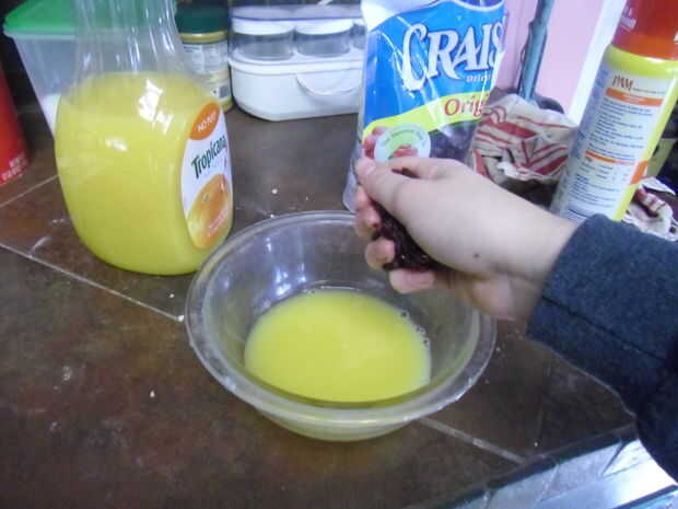 En primer lugar, combine los arándanos secos y jugo de naranja en un tazón pequeño y dejar reposar 10 minutos. Mientras tanto, agregar ambos azúcares, mantequilla. vainilla y los huevos en un cuenco grande y batir con una batidora hasta ligero y mullido.