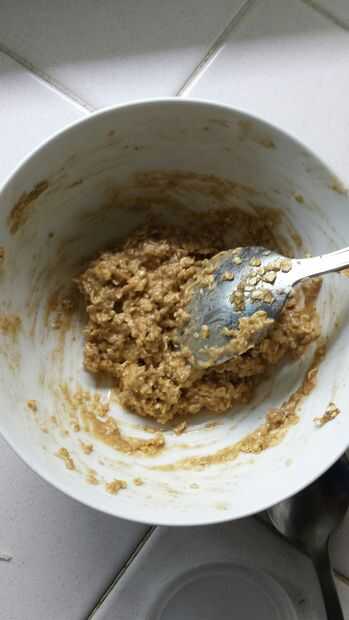 Otra vez, simplemente mezclar los ingredientes secos en un tazón antes de mezcla de ingredientes húmedos, microondas y mezcla mantequilla último. Hornee a 350 grados fahrenheit por ~ 10 minutos (hasta que se doren).