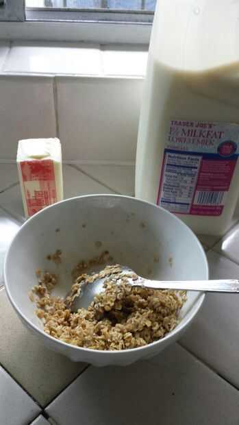 Para esta sustitución, usé una proporción de aproximadamente 1:1 de leche y mantequilla, es decir, 1/24 de taza de mantequilla y 1/24 taza de leche. En concreto, mi lista de ingredientes fueron: