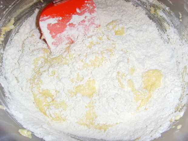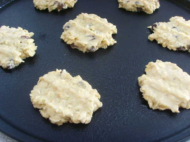 Debe tener una mezcla muy espesa y pegajosa por ahora. Si crees que es demasiado pegajosa o húmeda, añadir un poco más de harina. Hacer bolitas y luego coloque en una placa para horno. Después de las bolas en la bandeja para hornear, con las manos húmedas (para que la mezcla no se pega a la mano), pulsa las bolas hasta que queden aproximadamente media pulgada de grosor. Puede hacerlos como grande o grueso que quieras. Obtendrá información sobre 30 cookies de este lote.