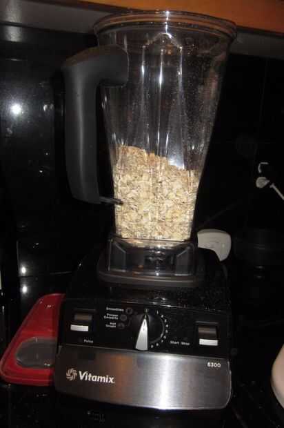 Si tienes avena instantánea rápido, pero tienes todo avena, tendrás que hacer lo que tenía que hacer (a menos que te gusta la avena de gran tamaño en sus cookies). Poner en una taza a la vez, en la vitamix, y pulso cada taza de harina de avena un par de veces (bueno la avena al ser más pequeño, pero no finamente molido). Y luego tienes tres tazas de avena de menor tamaño; Esto debería hacer las galletas más fácil de comer.