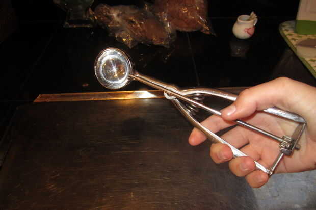 Si no tienes una bola de galleta, no te preocupes! Uso mis manos si no tiene uno porque en mi experiencia, con las manos para esta tarea es más fácil que usando dos cucharas. Pero si te gusta tener las manos limpias, siempre puede hacerlo de manera dura y usar dos cucharas. Tomar un coche a la tienda local de una cuchara para galletas merece la pena.
