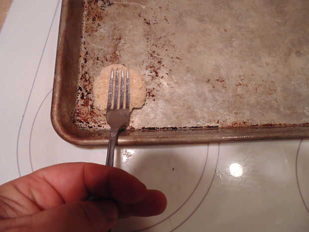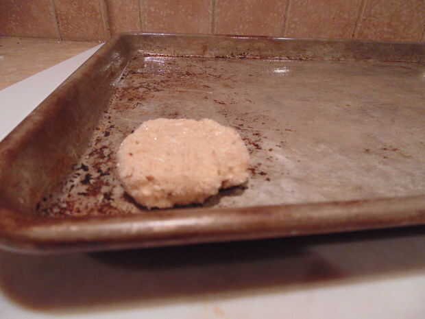 Coloque en una bandeja engrasada y aplanar suavemente con un tenedor, hasta sobre una media pulgada de grosor.