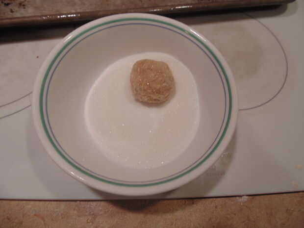 Ruede la bola formada en azúcar blanca hasta que estén bien cubiertas.
