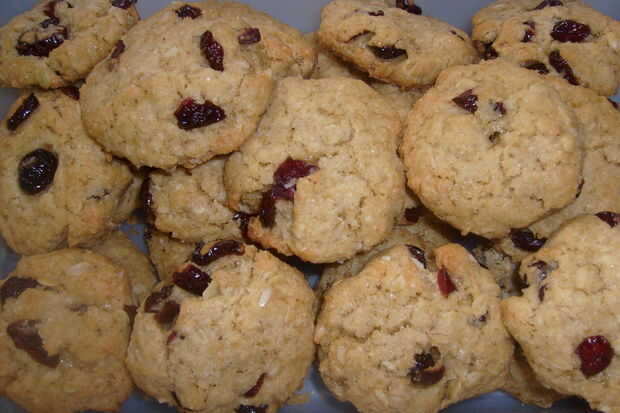 En un recipiente, mezclar la harina y polvo de hornear. En un segundo tazón, mezclar el aceite, azúcar, huevo y vainilla. Agregar la mezcla de harina y revolver. Agregar avena, coco y arándanos.