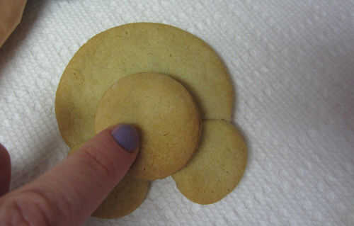 Coge una de las galletas grandes y una galleta más pequeña. Añadir un poco de glaseado real sobre la galleta grande y poner la galleta más pequeña en la parte superior, creando la nariz.