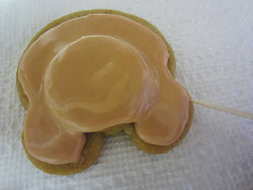 Cubra la nariz en glaseado real, seguido por los pies y la cabeza, dejando algo de espacio alrededor de la parte superior de la galleta.