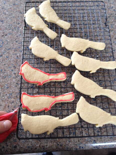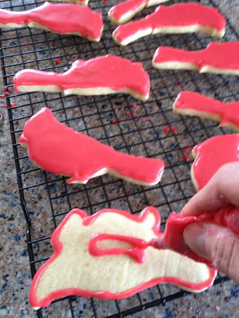 Llenar un recipiente con 2-3 tazas de azúcar en polvo y agregue aproximadamente una cucharada cafetera de extracto de vainilla. Mezcle en agua tibia (4-5 cucharadas) hasta que el azúcar en polvo junto a una consistencia que es firme pero mocosa. La consistencia de la formación de hielo se puede ajustar añadiendo más polvo azúcar o agua en cualquier momento. Use gel colorante a la mezcla de color en pequeños tazones de fuente de tu glaseado preparado. Sea creativo y use su imaginación. Para glasear las galletas inmersión sólo les en helar moqueo y goteo cualquier sobrante en una bandeja para hornear galletas. Para diseños más complejos delinear sus cookies con bordes más gruesos, entonces inunde con glaseado que moquea. He incluido fotos de muchos diversos diseños se me ocurrió este año. En particular yo estaba muy contento con mi hipopótamos de impresión de leopardo. Las direcciones están en las fotos individuales.