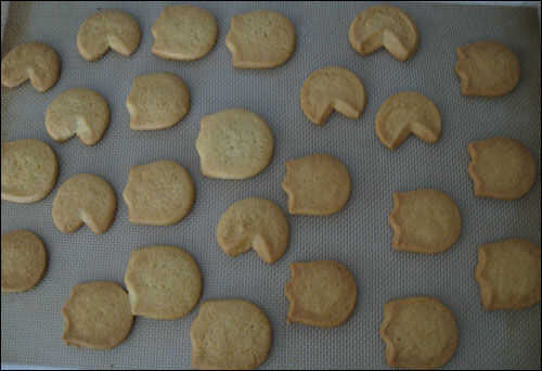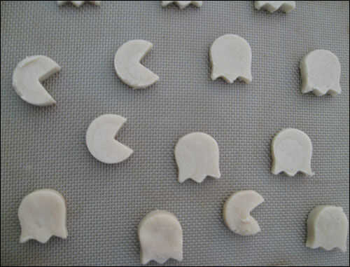 Pacman se crea desde un cortador de galletas circulares y luego un poco puntiagudo de otro cortador de la galleta; Utilicé un cortador de galletas de corazón para los míos. También puede utilizar un cuchillo en lugar de un cortador de galletas de puntiagudos bits.