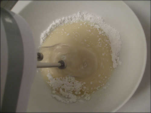 Un palillo de la inmersión en la botella de colorante en pasta y revuelva con el glaseado. Con la pasta de alimentos que utiliza, necesitaba dos inmersiones para crear el azul para el Inky, pero los otros colores sólo requieren una única inmersión.
