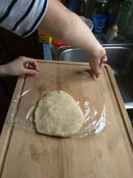 Platic que envuelva la masa y poner en la nevera por 15 a 20 min.