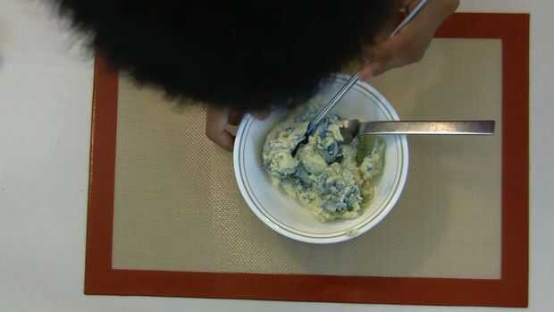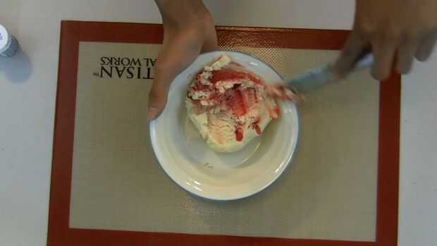 Dividir la masa de galleta en tercios, añadir un poco de colorante alimenticio rojo a un tercio y azul colorante a otro tercero. Asegúrese de que el color es bonito y oscuro, porque la coloración de la luz puede estar sujeto a decoloración durante el horneado. Deja el tercer tercio (no un error) incoloro.
