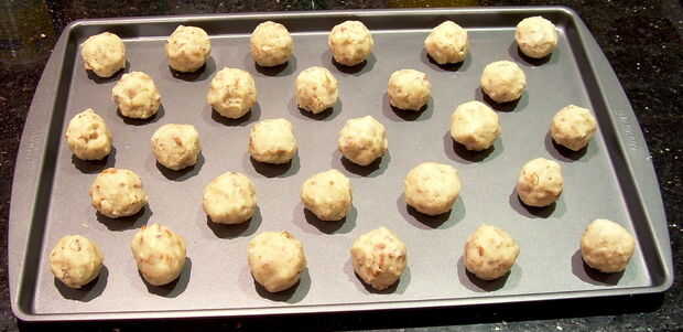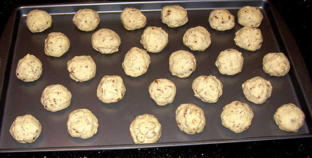 Una cucharada llena hará que una bola de aproximadamente 1 pulgada de diámetro de tamaño tradicional. Yo prefiero mis galletas un poco más pequeño, use una cucharada plana y sobre bolas de 2/3 3/4 pulgadas de diámetro. Colóquelas en una bandeja para hornear galletas. Estas cookies no muy extendido, así que usted puede embalarlos razonablemente cerca pero sin tocarla.