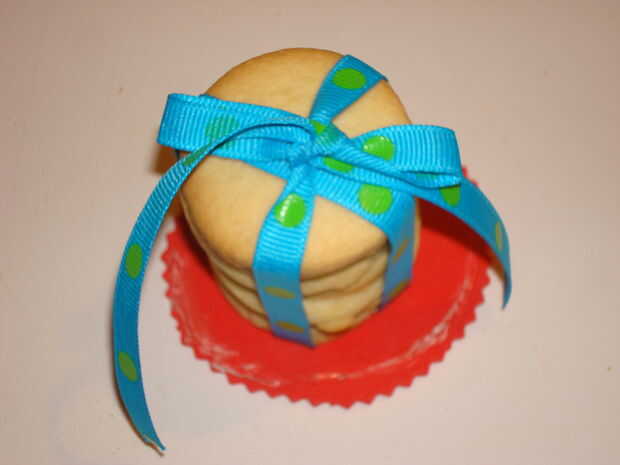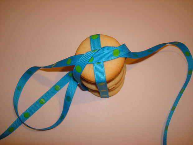 • Centro una pila de las galletas (con la parte inferior de las galletas para arriba) sobre la cinta