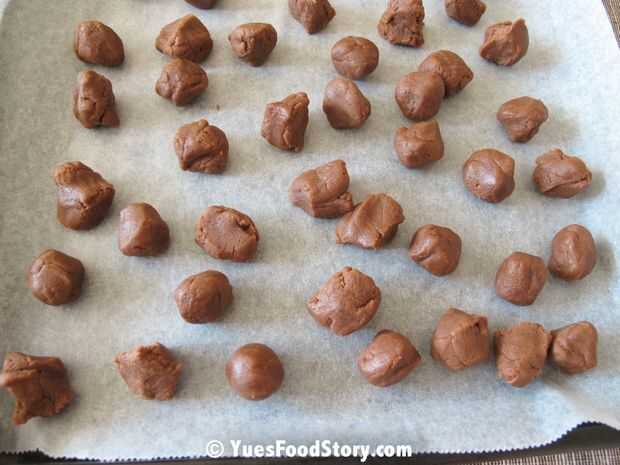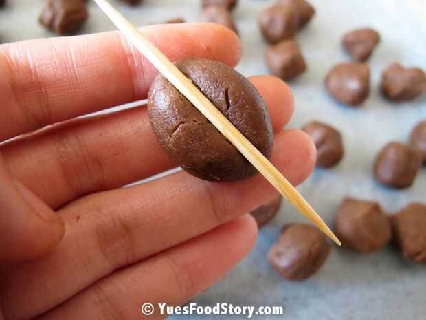 Divide la masa en trozos pequeños de 5g, forma cada uno a una forma ovalada y luego presione la línea media con un pico de diente.