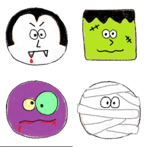 Para los zombies, en lugar de ojos dulces, se adhiere una pizca de confeti y un caramelo derretir, luego dibujar puntos para los ojos con el escritor comestible negro. Para la momia, utilice el blanco con una boquilla "47" para las vendas de la pipa.