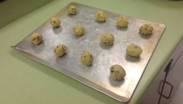 Precalentar el horno a 350℉ (175℃). Dividir las cookies en 24 bolas y colóquelas en una bandeja engrasada. (Puede que necesite 2.) Poner las galletas en el horno precalentado y hornear durante unos 10-12 minutos. Los bordes de las galletas deben ser de color dorado. Cuando las galletas se sacan y coloque sobre una rejilla para enfriar con una espátula.
