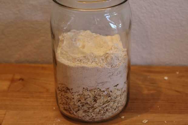 Vierte cuidadosamente la mezcla sobre avena. Asegúrese de que está añadiendo ingredientes para dejar de agitarla, o las capas se enturbia.