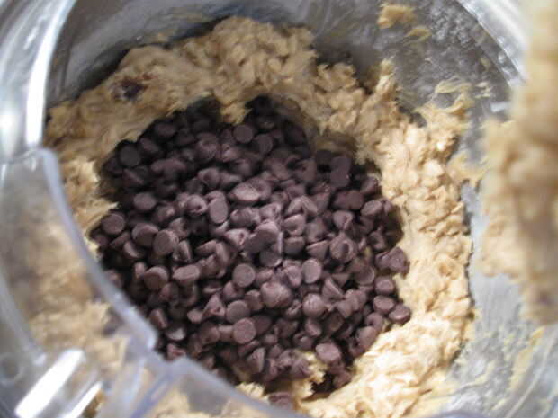 El último ingrediente a mezclar en la masa es las virutas de chocolate. Medir a 12 onzas de chocolate semidulce. Vierta los chips de chocolate en el centro de la masa. Mezclar la masa hasta que los chips se incorporan a la masa.