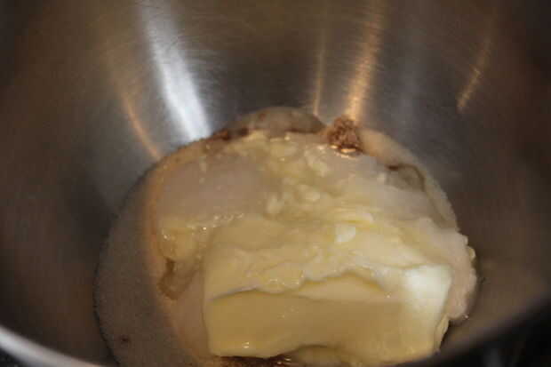 galletas de chispas de Chocolate de la materia.Paso 1: Crema de dos palos de temperatura de la mantequilla sin sal con una buena cantidad (aproximadamente 1.5 c) de azúcar morena. Un mezclador es bueno, pero también funciona una cuchara de madera.Pas