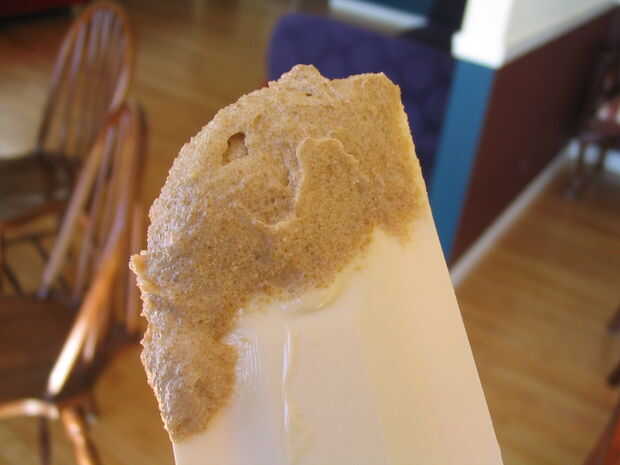 Velocidad crea pequeñas bolsas de aire en la grasa. El color se aclara como se introduce más aire, pero los gránulos individuales del azúcar serán estando visibles.
