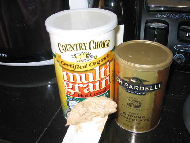 De la mezcla de avena a gusto y un par de cucharadas de cacao en polvo. Tiendo a utilizar cerca de una taza de avena. También ahora es el momento de añadir las nueces picadas, especias frescas o secas (pimienta de Jamaica, cardamomo, canela, jengibre, etc.), coco o ralladura de cítricos.