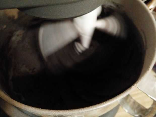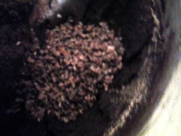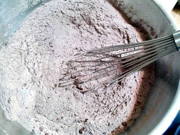 Ahora que la mercancía mojada busca crema poco a poco incorporar los bienes mixtos de seco. Ahora usted debe tener una masa pegajosa casi negra. Se desea agregar media taza de semillas de cacao a esta mezcla dejando de lado el resto para el siguiente paso.