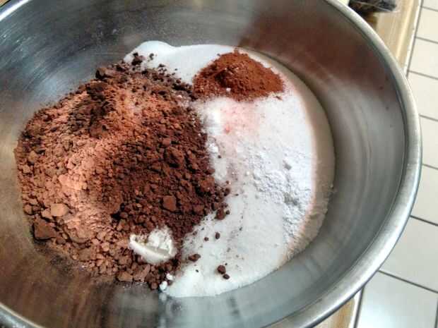 Dejar de lado las semillas de cacao. Luego combina las restantes mercancías secas en un tazón con un batidor para incorporarlas. La mezcla debe ser un gris muy opaco una vez que todo está bien combinado. Una vez que tenga los bienes seco mezclados. Todos los productos wet Dump en el tazón de su batidora con base o en un tazón aparte y les crema juntos.