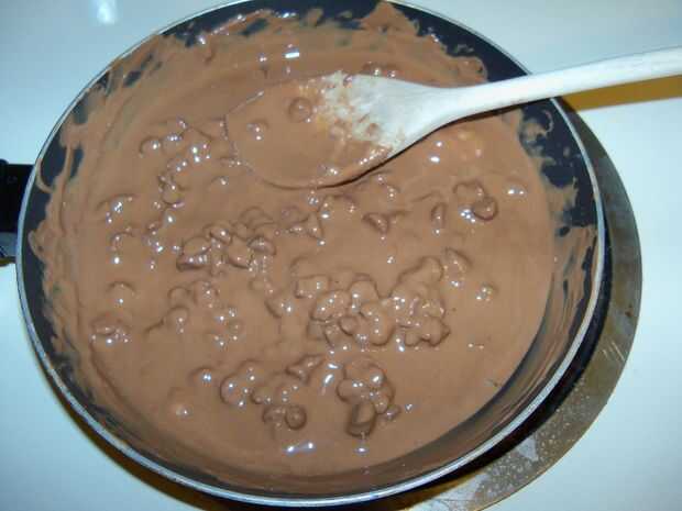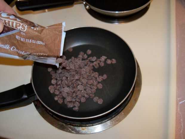 Para los chips de chocolate, simplemente Vierta en la cacerola y revolver repetidamente. Comenzarán a licuar y finalmente suavizar. Cuando esto se hace, siempre y cuando mantenga revolviendo cada pocos minutos quedará el chocolate derretidos y listo para un buen rato.