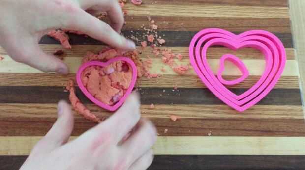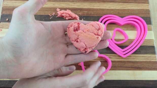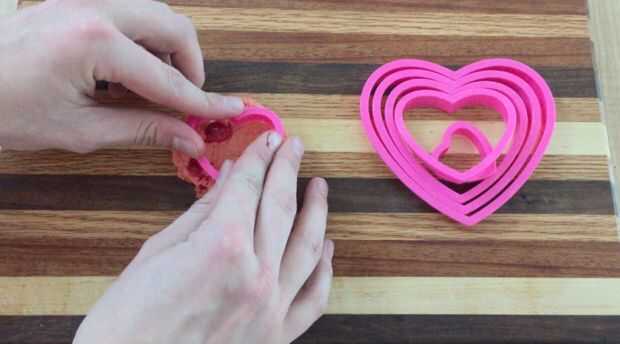 Después de que las galletas se enfrían hacia abajo, agarrar sus cortadores de la galleta de corazón. La belleza de cortadores de la galleta anidados es que puede minimizar su desecho mediante el uso de la herramienta de corte que se adapta a cada cookie lo mejor.
