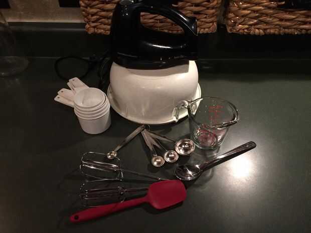 Necesitas 2 recipientes de mezcla, medición de tazas y cucharas, cucharas, espátula de goma, varios moldes para galletas y una batidora eléctrica.