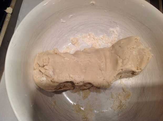 • Añadir una taza de harina y amasar, amasar, amasar.  Obtener todas la harina mezcla Ito la masa.  Va a ser disuelto grumosa... Puede suavizar lo juntos más cuando usted forma las galletas.