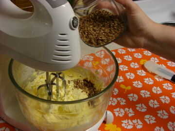 Hecho de una receta de galletas de avena simple azúcar baja; Estas cookies impresionarán a nadie para Halloween. Servimos con una salsa de remolacha roja sangre hecha simple inmersión!Paso 1: Hacer la masa de galletas de avenaPrimera cosechadora 1/2