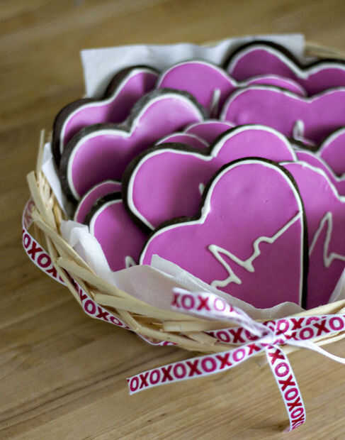 -Tubería primero el contorno en blanco usando la guinda más gruesa y dejar reposar durante 10 minutos antes de volver a inundar el resto con color de rosa. Cuando la Rosa esté seca, volver y los patrones de ECG con más glaseado blanco de la pipa.