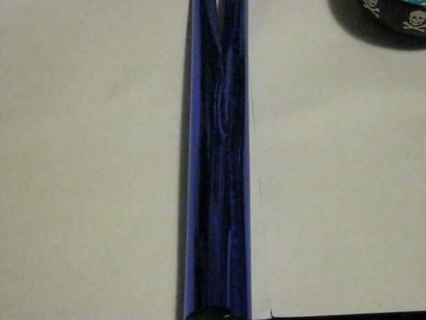 Ahora te quieres tomar el papel de embalaje, tengo el buen tipo que es un poco más grueso (y creo que el exterior brillante ayuda aquí) y bastante que lo envolverá todo el tubo, como se muestra en la imagen dos.
