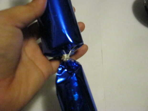 Cómo hice fue girar el extremo como un Tootsie Roll, luego hice un slipknot, colocar alrededor el papel torcido (Asegúrese de incluir la cadena de los fuegos artificiales) y envuelto alrededor y alrededor y alrededor de tejer la cadena de fuegos artificiales en él cuando fui.