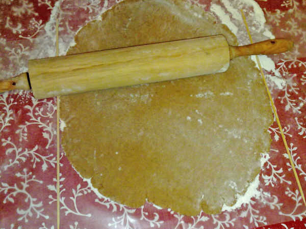 Ligeramente de harina la superficie de trabajo y amasar. Colocar la 1/3 masa y aplanarlos un poco. Utilice su palote y estirar la masa alternando direcciones sin forzar demasiado la masa. Sólo toma unos pocos minutos a 1/8 o 1/4 de pulgada de espesor. (Dependiendo de su preferencia).