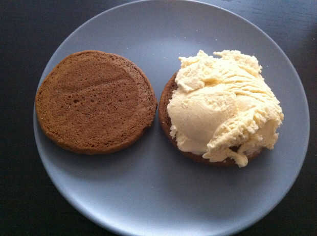 Simplemente dejar que el helado de suavizar un poco, entonces slather unas cucharadas en una cookie.
