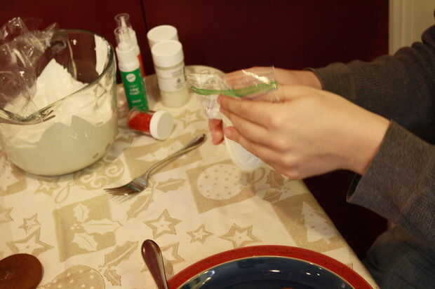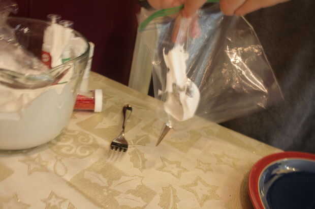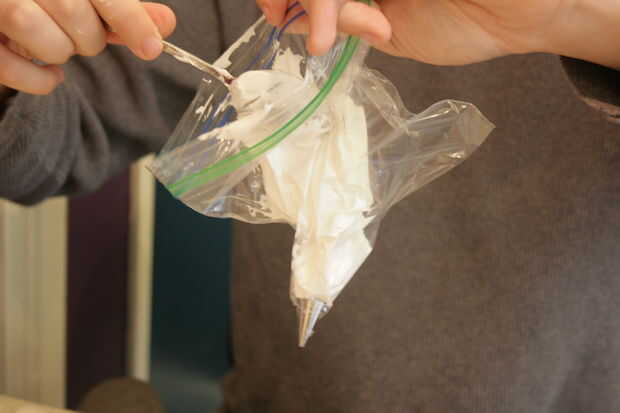 Si hiciste un lío como hice yo o tu bolsa se rompe bajo la presión, meter otro agujero en la esquina de otra bolsa de Ziploc, empujar la misma punta de hielo a través de y doble la bolsa.