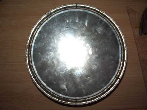 Mi primera pandereta tenía 4 agujeros con tapones y casi no hay espacio para que un agujero adicional mantenerlo. Para el segundo, hice 6 agujeros: 5 con los casquillos y a poner su dedo pulgar para sostenerla. Esto le dio un sonido mejor y era todavía lo suficientemente robustos.
