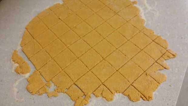 Cortar en cuadrados 2" con un cortador de pizza y se ríen con un tenedor.