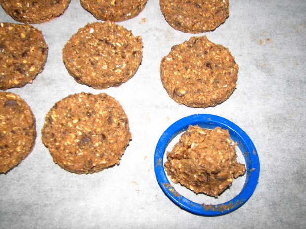 Sacar porciones de 1/4 taza de masa sobre papel sulfurizado. Usando un cortador de galleta 1/2 pulgada 2 o un molde de anillo, presione la masa con los dedos dentro del molde.