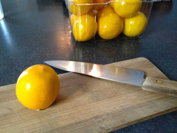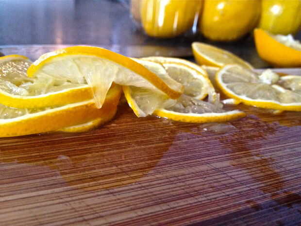 Utilice un cuchillo afilado para cortar las rodajas de limón lo más delgadas posible; deben * sólo celebrar juntos. Algunas de las láminas pueden romperse aparte; Esto está bien, que les puede formar un círculo en la cookie. Si todos están rompiendo, intente cortar sólo un pelo más grueso para que no se desintegraría.