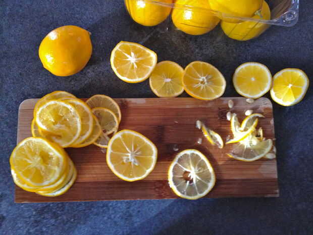 Tendrá unos 48 rodajas de limón (aprox. 8 los buenos de cada limón). Tiendo a hacer siempre unos pocos extra-si usted no los usa, siempre puede comerlos como caramelo!