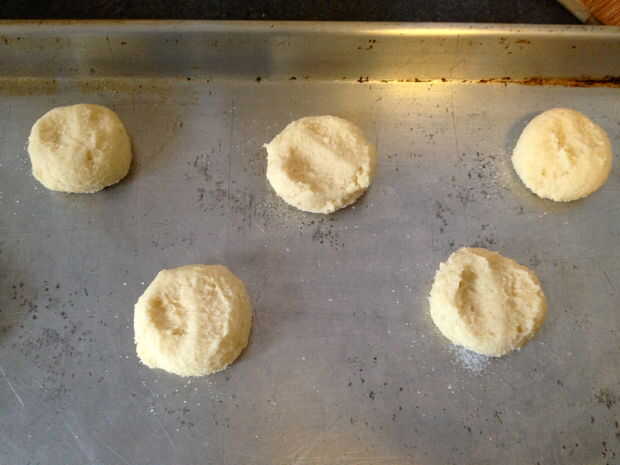 Utilice dos dedos para aplanar suavemente la bola solo un poco.