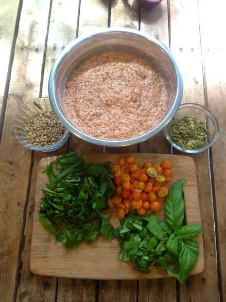 Galletas de lino crudo, tomate albahaca (8 / 14 paso)