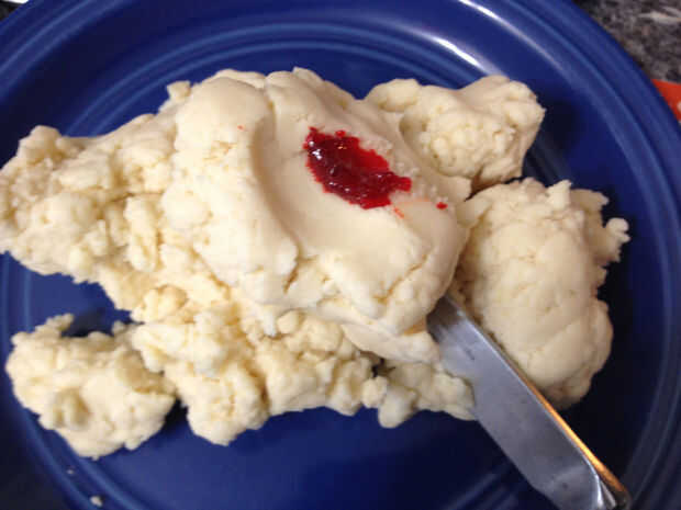 Batir en la mezcla seca y dividir la masa en 3 porciones